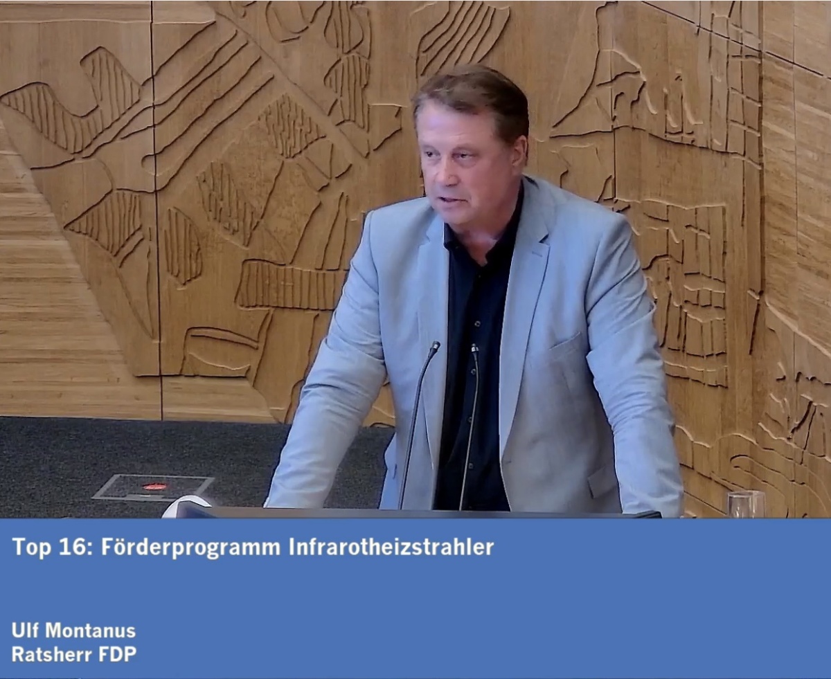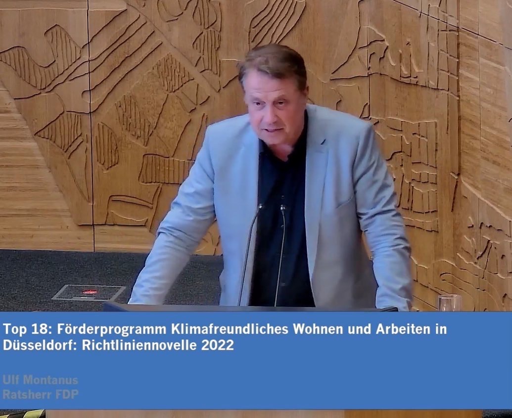 Meine Redebeiträge zu den Umweltthemen im Rat der Stadt Düsseldorf am 23.06.2022. Die FDP unterstützt das Förderprogramm für Infrarotstrahler der Verwaltung zur Unterstützung der Gastronomie. So gibt es einen Anreiz auf die Gasheizstrahler zu verzichten, ohne die zu Corona-Zeiten wichtige Außenterrassen für die Corona geschädigte Gastronomie uninteressant zu machen. Das Förderprogramm Klimafreundliches Wohnen und Arbeiten findet ebenfalls unsere Unterstützung. Bei den Handlungsfeldern Nachhaltigkeit dringen wir darauf die beschlossenen Felder schnell umzusetzen und nicht immer wieder durch neue Beschlüsse zu verzögern.